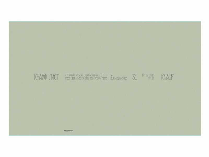 Гипсокартон Knauf 12.5x1200x3650 влагостойкий